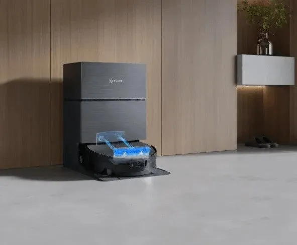 oMNI on ECOVACSin all-in-one-telakka: automaattinen pussitettu pölyn tyhjennys, kuumavesimopin pesu, kuumailmakuivaus ja itsepuhdistus.