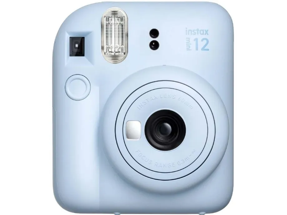 Fujifilm Instax Mini 12. Picture size: 86 x 54 mm, Product colour: Blue, Maximum focal length (35mm film equiv): 60 mm. Flash range: 0.3 - 2.2 m, Flash recharging time: 7 s, Flash modes: Auto. Fastest camera shutter speed: 1/2 s, Slowest camera shutter speed: 0.004 s, Camera shutter type: Electronic. Cylindrical battery size: AA, Battery voltage: 1.5 V, Battery life (photos): 100 pc(s). Weight: 306 g, Height: 122 mm, Depth: 66.6 mm