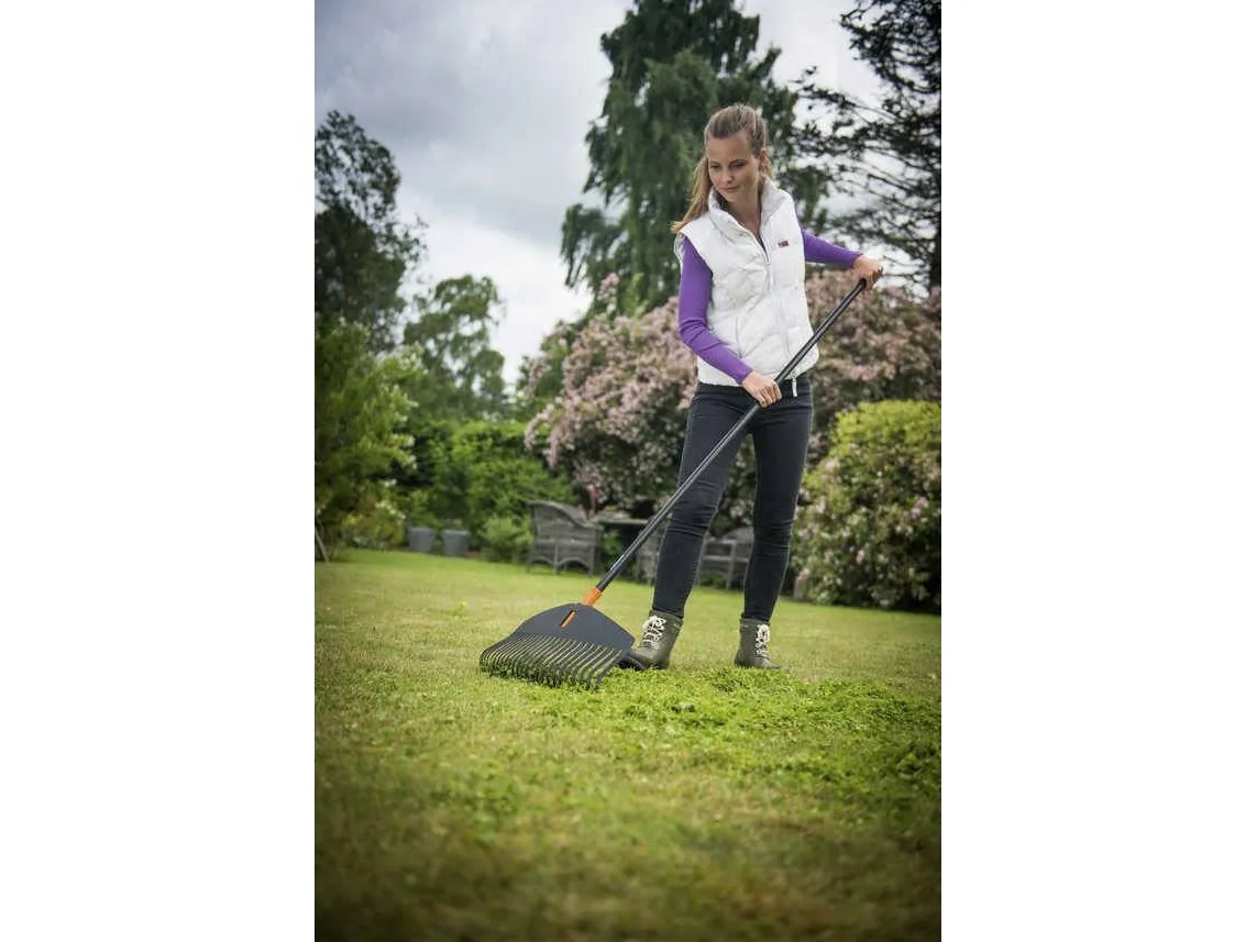 Solid™Leaf Rake Large is a wide headed rake for large lawn areas. Its all purpose application makes it a great rake for all seasons.When you need to clear a large lawn space and rake leaves, you need a lawn rake that takes care of business with no fuss. Fiskars Solid™ Leaf Rake L with its broad 520 mm head and flexible plastic tines is great for raking up and yard cleaning in general. If raking the lawn is your goal, this garden hand tool will not let you down.Fiskars 1003465. Product type: Leaf scoop rake, Product colour: Black, Handle colour: Orange. Handle length: 175 cm