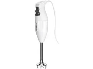 It chops up hard and soft foods, crushes ice cubes or processes cake batter in no time at all: the ESGE-Zauberstab® M 100 Design. Ergonomic handle design and the powerful AC motor "Made in Switzerland" are accompanied by the two-stage soft membrane switch for either 7,000 or 10,000 revolutions per minute. In addition to the practical wall bracket, the equipment includes the multi-blade and the operating instructions with delicious recipe ideas. Available in black and white - and always with a five-year guaranteeESGE M 100 D. Type: Immersion blender, Product colour: White, Cord length: 1.65 m. Rotational speed (min): 7000 RPM, Rotational speed (max): 1000 RPM. Housing material: Metal, Plastic. Power: 120 W, Power source: AC, AC input voltage: 220 - 240 V. Width: 65 mm, Depth: 97 mm, Height: 350 mm