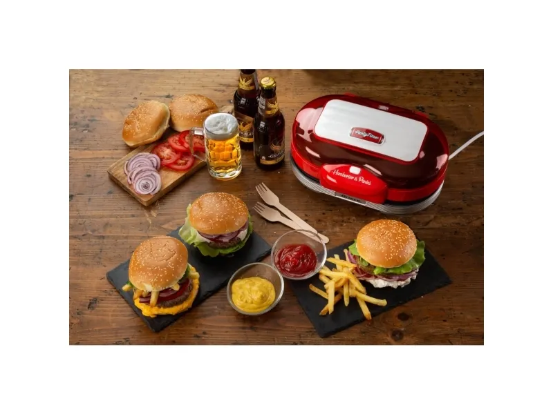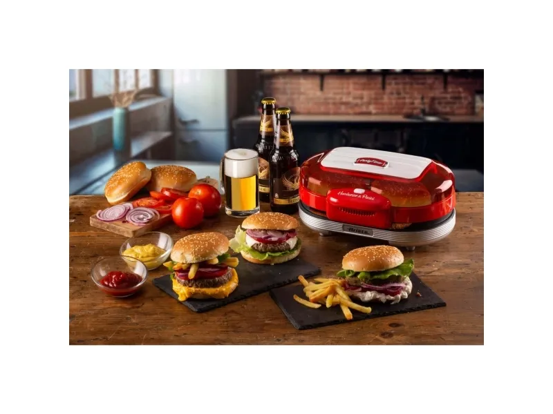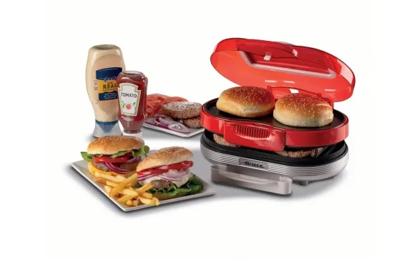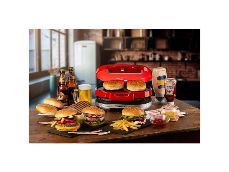 Discover the convenience of homemade burgers with the Ariete Party Time burger maker. This compact appliance is designed to fit perfectly in any kitchen, allowing you to cook up to 2 burgers simultaneously. With a power consumption of 1.2 kW, it cooks your burgers quickly and efficiently, so you can enjoy your meal without the long wait. The non-stick coating ensures that your burgers come out perfectly every time and makes cleanup a breeze. Additionally, the included drip tray helps keep your cooking space clean. Compliant with Directive 2012/19/EU, you can be confident in the safety and quality of your burger maker. Whether you're hosting a party or simply enjoying a meal at home, this burger maker is the perfect addition to your kitchen.