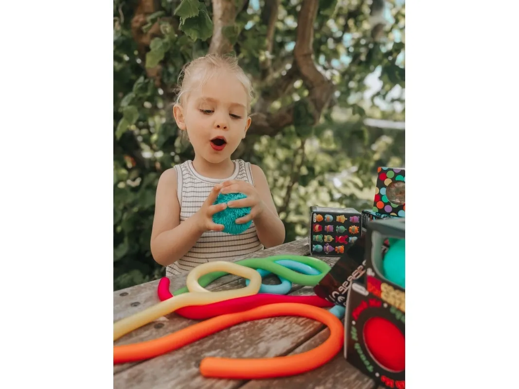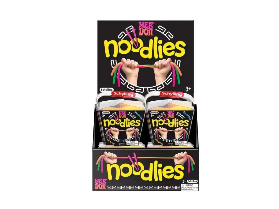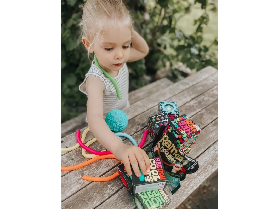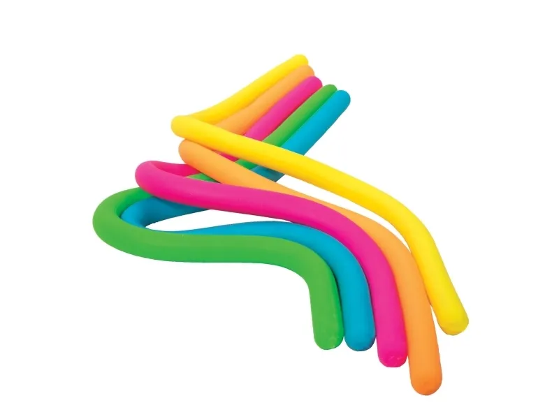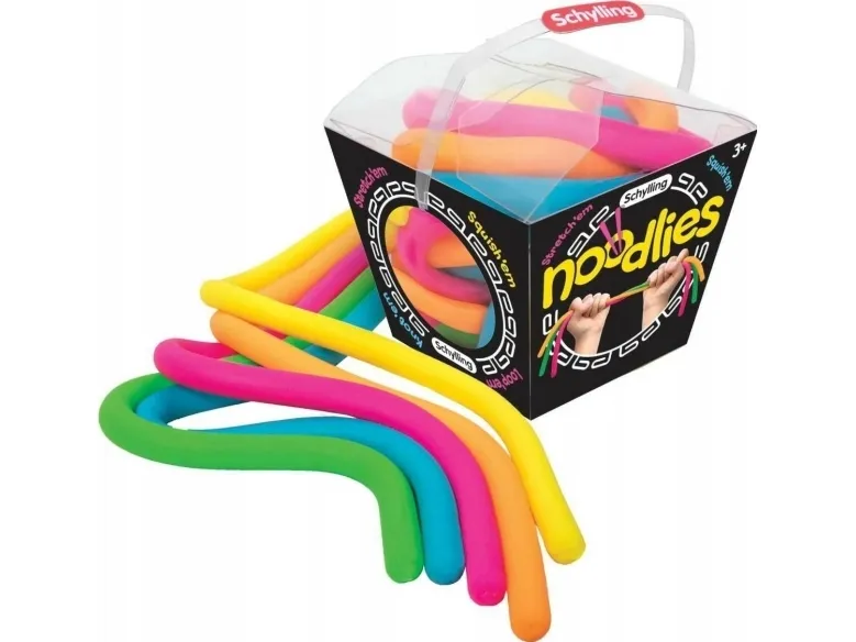 Värikkäät jumbonuudelit, jotka venyvät ja vanuvat. Pakkauksessa 5 eri väristä nuudelia.