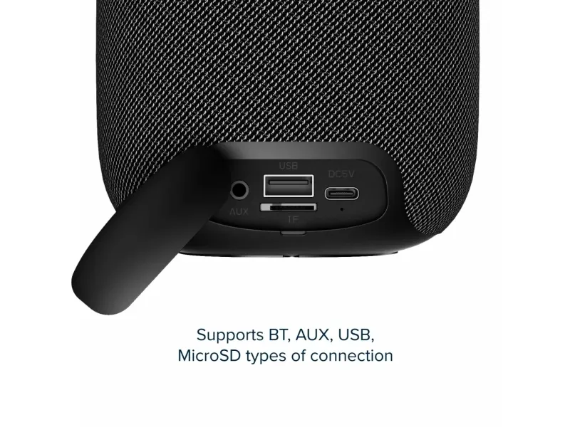 The Canyon portable wireless speaker is ready to blast your all-time favorites. Rated at 10 Watts, it is a travel-sized powerhouse. Rounded shapes, compact size, and a neat little handle make it a perfect companion for a trip or a countryside party with your friends! The RGB backlight on top will look awesome after dark, and you can easily find the playback control buttons there. Connect two speakers in TWS mode to create a full stereo effect and have an unforgettable party anywhere! Enjoy long hours of music while being connected with Bluetooth, and once the battery dies - just plug it in with about any Type-C cable. Besides, you can use AUX, USB, or a MicroSD memory card as your media source. They truly recommend using Bluetooth - what's better than switching playlists on the fly? As far as 10 meters from the speaker, the connection remains stable. Get your BSP-8 speaker in red, gray, or black - your adventures need to get a soundtrack.