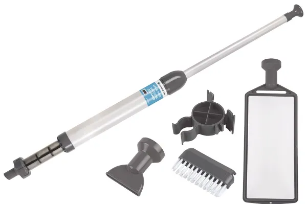 Kevyt kaikki-yhdessä-työkalu, joka tekee puutarha-altaiden, uima-altaiden ja kylpylöiden kohdennetusta puhdistuksesta nopeaa ja helppoa.