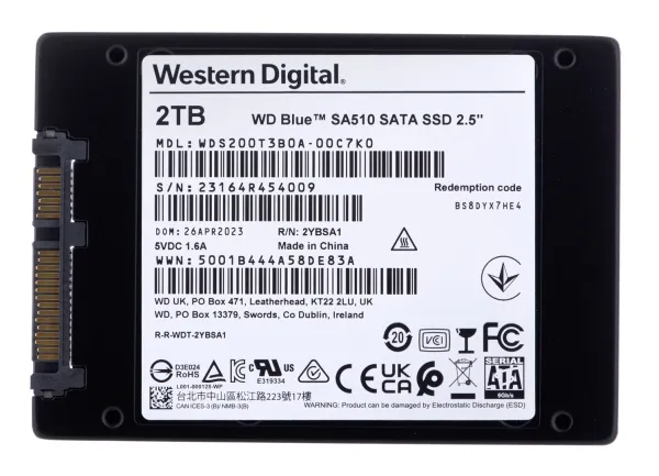 Western Digital Blue SA510, 2 TB, 2.5", 560 MB/s, 6 Gbit/s