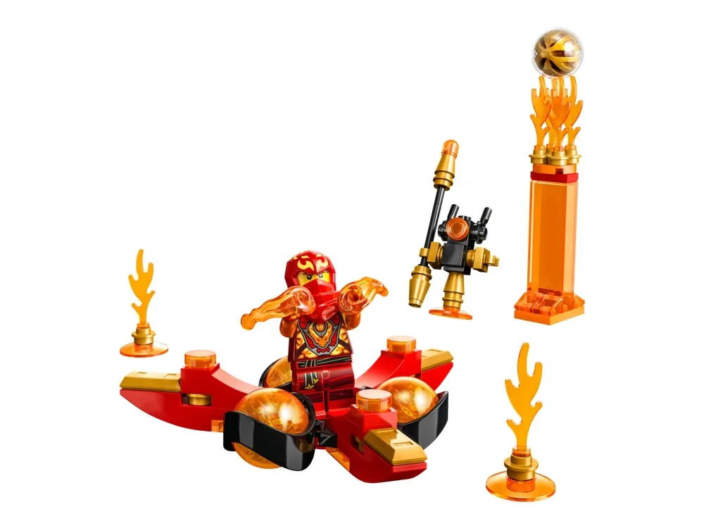 Treenaa ninjan spinjitzutaidot huippuunsa Kun lapsi laittaa Lohikäärmevoiman Kain spinneriin ja napauttaa yhtä sen päädyistä, Kai tekee upean takaperinvoltin. Kai yrittää väistää liekkiesteet, voittaa imperiumin droidin hahmon ja napata kerättävän kultaisen lohikäärmeen energiaytimen palikoista rakennetun liekehtivän telineen päältä. Mukana on myös oranssi lohikäärmevoimaosa, joita lapset voivat kerätä myös 4:ssä muussa värissä eri NINJAGO®-seteistä.