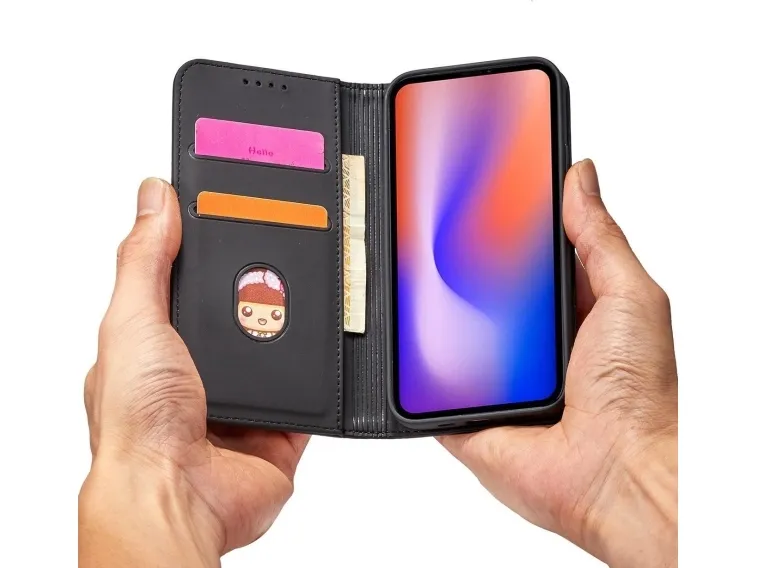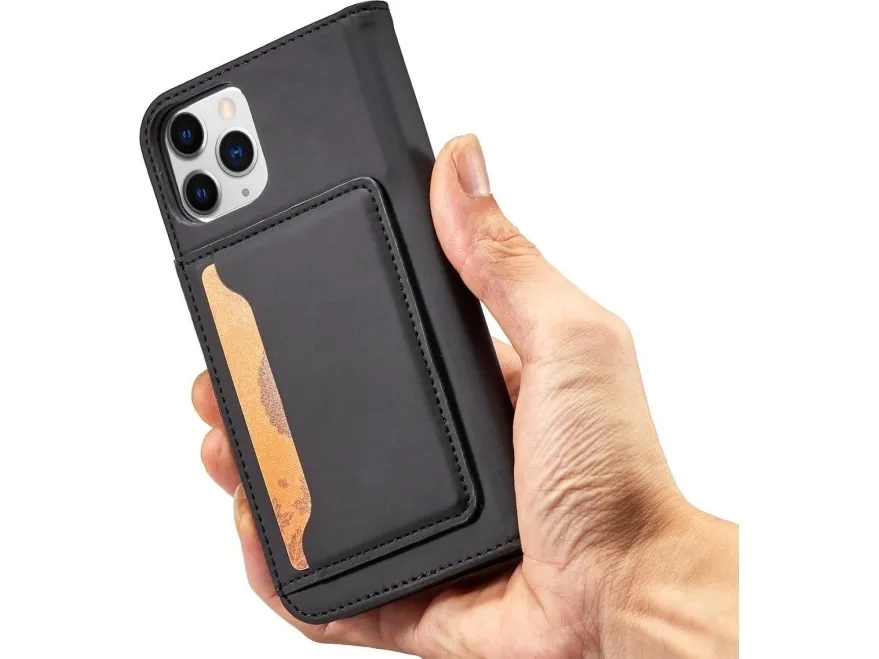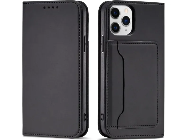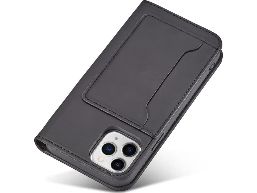 Hurtel Magnet Card Case iPhone 12 Pro Max kortti lompakko tapauksessa kortti jalusta musta