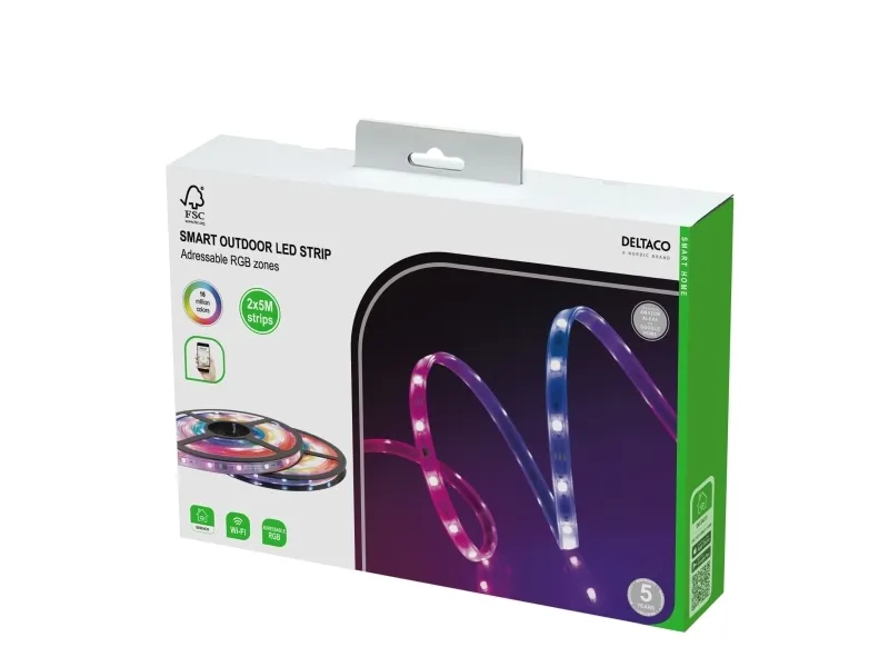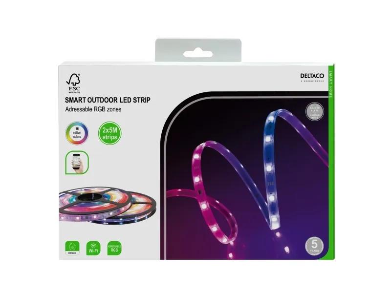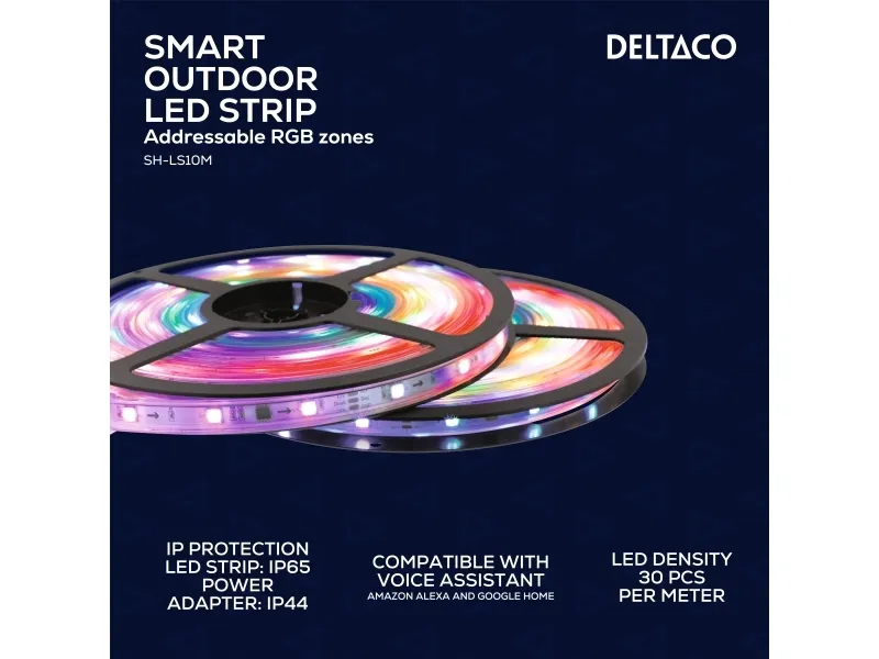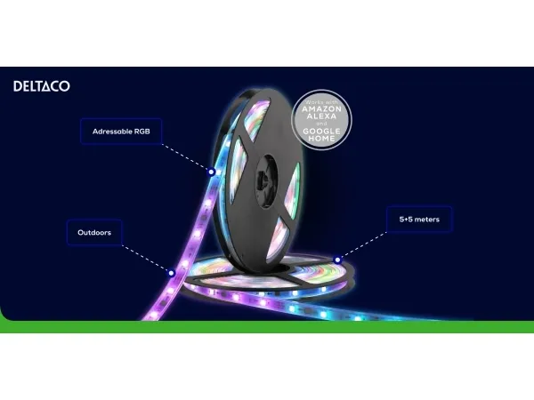 The Aurdel DELTACO SMART HOME light strip transforms any space with its vibrant RGB illumination and flexible design. This smart lighting solution is not only easy to install but also offers remote control through the DELTACO SMART HOME app, making it convenient to adjust settings or set lighting schedules from anywhere. With compatibility for voice commands through Alexa and Google Assistant, it integrates seamlessly into your smart home ecosystem, providing an effortless lighting experience. The light strip features 16 million changeable colors and a high density of 30 LEDs/m, ensuring bright and dynamic lighting for any occasion. Designed for durability, it is IP65 compliant, making it suitable for both indoor and outdoor use. Whether you're looking to enhance your home's ambiance or add a touch of creativity to your space, the Aurdel DELTACO SMART HOME light strip offers a versatile and intelligent lighting solution.