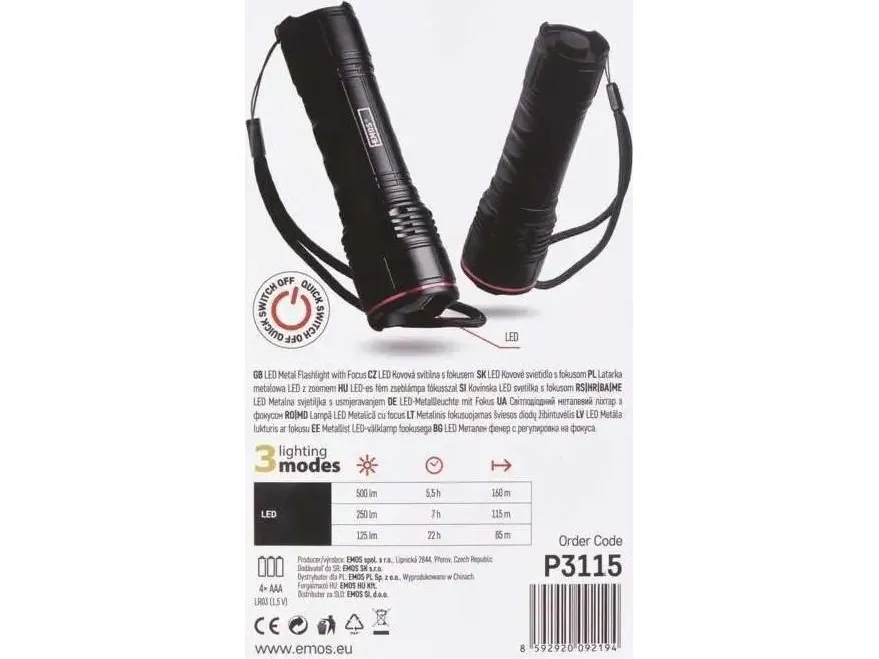 LED metalli taskulamppu 500 lm 4 AAA zoomilla P3115