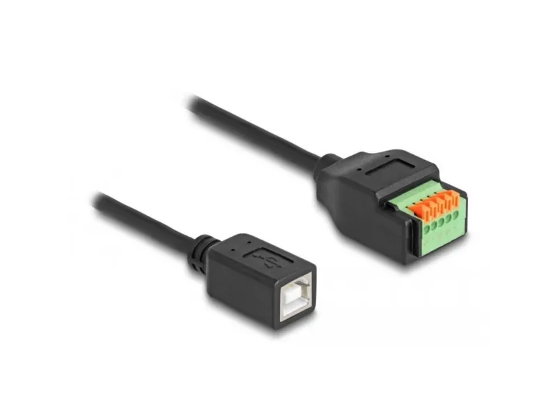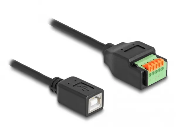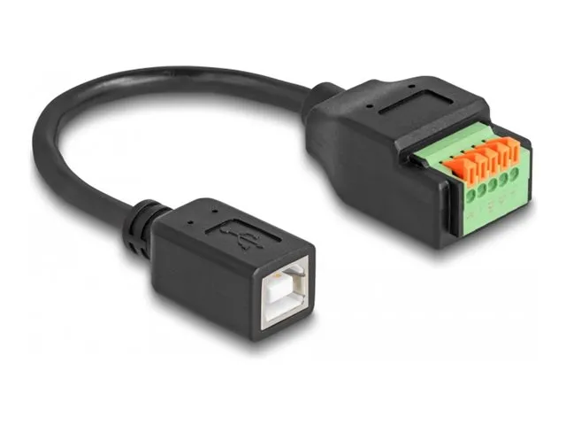 This adapter cable by Delock can be used to connect various USB Type-B devices. Strands with stripped ends can be connected without tools via the terminal block with push button.