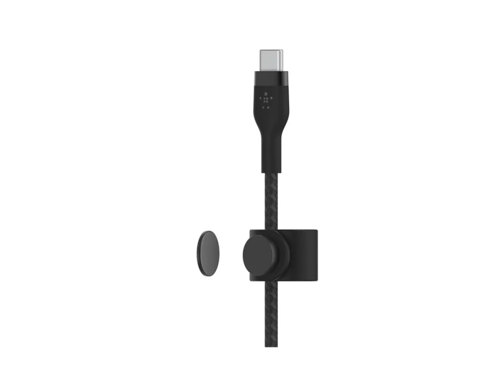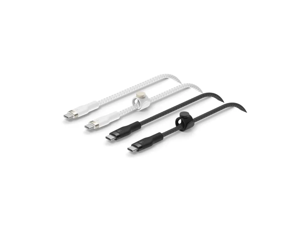 Discover the Belkin BOOST CHARGE PRO Flex, a high-performance USB-C cable designed to meet the needs of modern devices. With its durable double braided jacket made of silicone and nylon, this cable is built to last, resisting wear and tear from daily use. The inclusion of a cable strap with a magnetic button ensures your cable stays organized and tangle-free. Supporting fast charging through USB Power Delivery (60W) and a rated current of 3 A, it powers up your devices quickly and efficiently. Whether you're syncing data or charging your device, the Belkin BOOST CHARGE PRO Flex offers reliable connectivity with its 24-pin USB-C connectors. Certified by USB-IF and compliant with RoHS standards, it's a safe and environmentally friendly choice for your tech accessories.