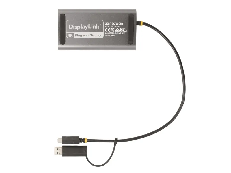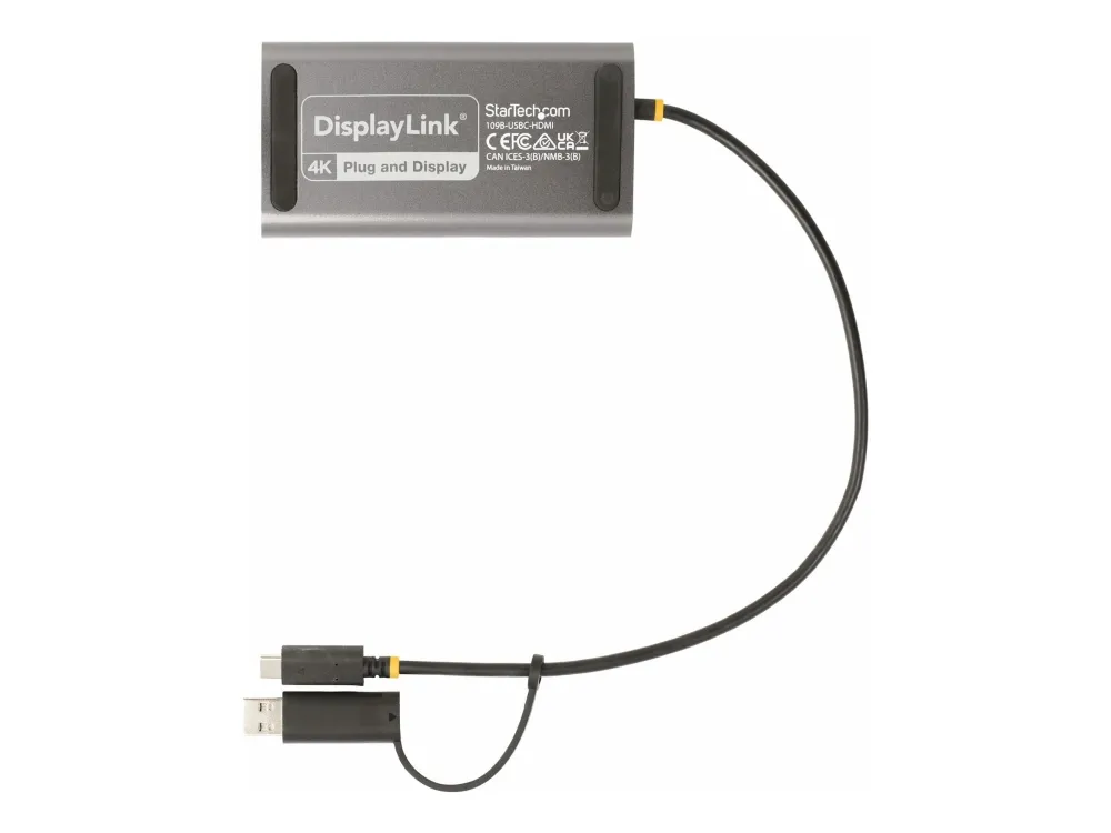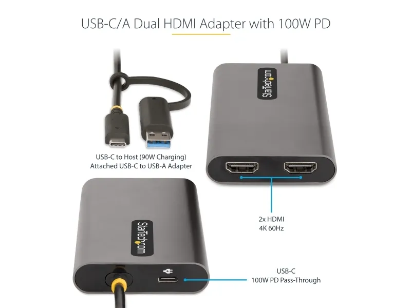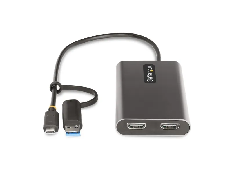 StarTech.com USB-C to Dual-HDMI Adapter, USB-C or A to 2x HDMI, 4K 60Hz, 100W PD Pass-Through, 1ft (30cm) Built-in Cable, External Video Graphics Adapter - USB to HDMI Multi-Monitor Converter for Laptop (109B-USBC-HDMI) - näyttösovitin - HDMI / USB - TAA-yhteensopiva - 30 cm