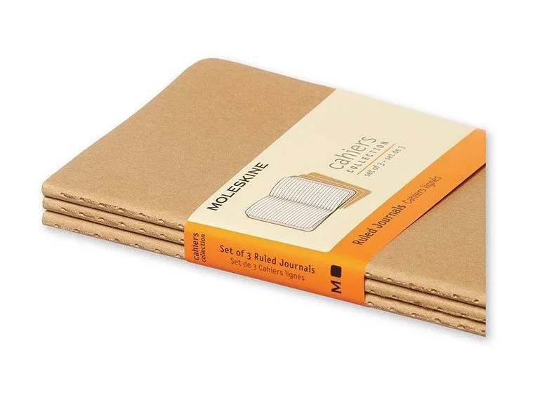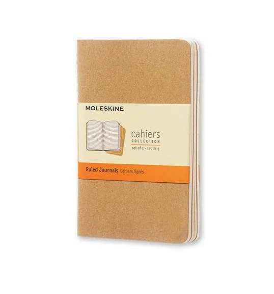 Moleskine Cahier päiväkirja viivoilla, taskukokoinen Kraft, 3 kpl pakkaus
