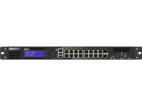 QNAP's QGD-1600P is the world's first PoE managed switch that supports Virtual Machines (VMs). It features 4-port 60-watt and 12-port 30-watt Gigabit PoE (with two PoE/SFP Combo ports) for highly flexible networking environment deployment. With a dual-CPU design, the QGD-1600P provides both Layer 2 management functions for VM and QTS applications. The QGD-1600P also features Software-Defined Networking (SDN), enabling it to function as a NAS, NVR, router, firewall and AP controller for IP surveillance, network security, storage expansion, and wireless LAN management applications. Therefore, the Guardian series offers SMBs a cost-optimized and centrally managed LAN deployment solution.