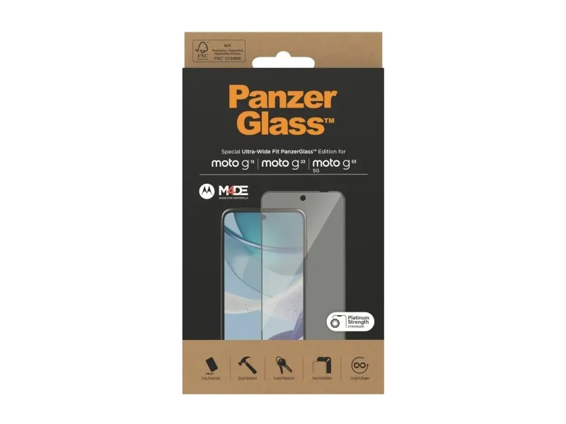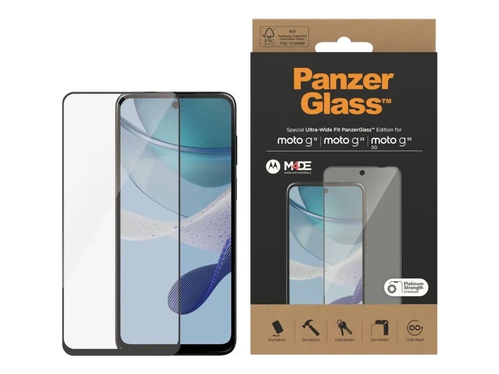 PanzerGlass 6572, Motorola, Motorola - moto g13, Motorola - moto g23, Motorola - moto g53 5G, Asennus kuivana, Naarmuuntumisenkestävä, Iskunkestävä, Läpinäkyvä, 1 kpl