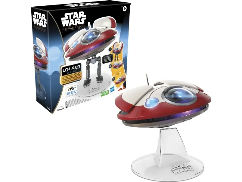 Star Wars L0-LA59 (Lola) Animatronic Edition on osa Hasbron Star Wars ‑valikoimaa ja tuo rakastetun droidikumppanin lasten ja fanien koteihin. Tämän Tähtien sota ‑lelun malli ja yksityiskohdat perustuvat Obi-Wan Kenobi ‑sarjaan, joka on katsottavissa Disney+ -palvelussa. Kosketa L0-LA59:n päässä olevaa tunnistinta aktivoidaksesi yli 45 erilaista valojen, äänien ja liikkeiden yhdistelmää 3 eri tilassa. Käytä Companion-tilaa kiinnittämällä L0-LA59:n jalat, Hover-tilaa kiinnittämällä jalusta tai On the Go ‑tilaa irrottamalla lelu jommastakummasta tuesta. L0-LA59 jopa reagoi taustaääniin erilaisilla valoilla, äänillä ja liikkeillä. Yli 4-vuotiaat lapset ihastuvat tähän interaktiiviseen droidiin, joka on täydellinen lisäys fanien Tähtien sota ‑kokoelmiin. Hasbro valmistaa Star Wars ‑tuotteita Lucasfilm Ltd:n myöntämällä lisenssillä. Hasbro ja kaikki siihen liittyvät termit ovat Hasbron tavaramerkkejä.