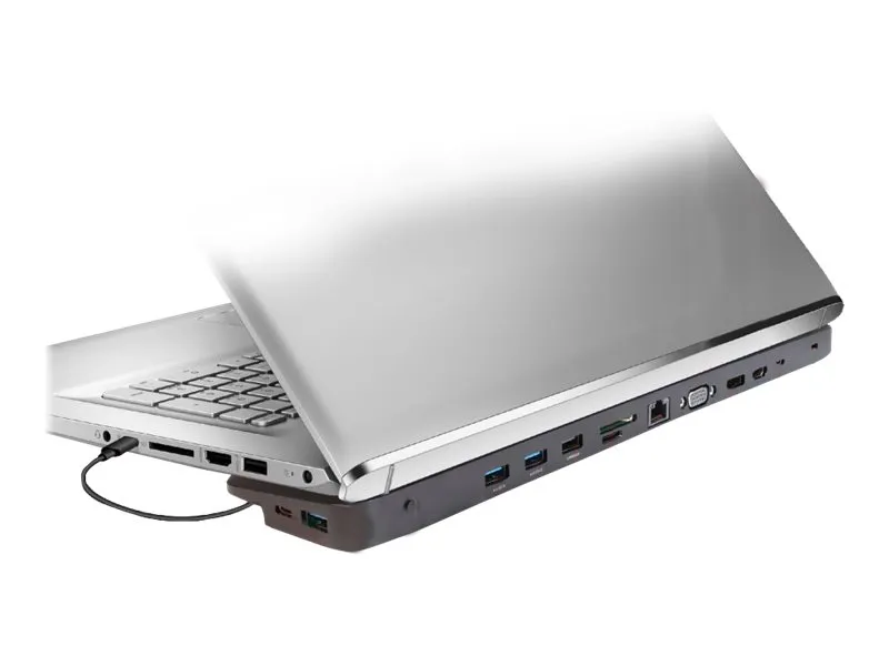 The Club 3D CSV-1564W65 USB Gen1 Type-C Triple Display Dynamic PD Charging Dock is an integrated solution combining video, data, power, Ethernet and audio especially for frequent travelers. The three different video ports (HDMI, DisplayPort and VGA) allow you to enjoy three different images or videos on three different displays simultaneously under MST mode. The USB Type-A ports and USB Type-C data port allow you to connect multiple USB devices to the host. The USB Type-C charging port allows you to provide power for this dock and can charge the host PC at the same time by connecting a PD power adapter, no need to carry your notebook's power supply. So in general the user is traveling lighter. The Micro SD and SD/MMC ports allow you to read information in the memory card onto the host. The 3.5mm audio port allows enjoying music of the host via a headset. Besides, with the Gigabit Ethernet port, you can enjoy high-speed Ethernet on the host.