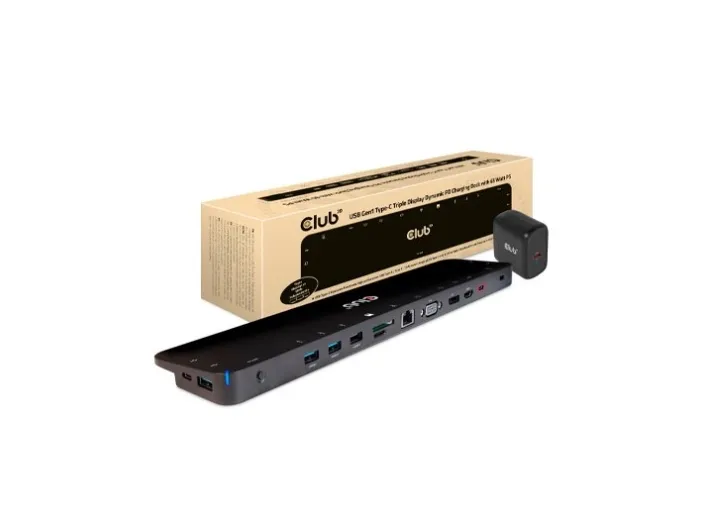 Club 3D Triple Display Dynamic PD Charging Dock - telakointiasema - USB-C - VGA, HDMI, DP - 1GbE