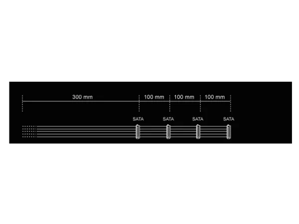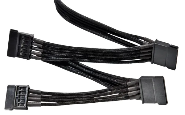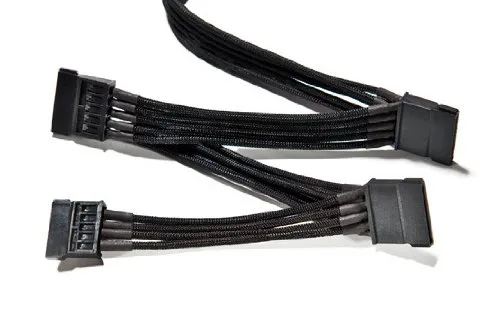 The 4x S-ATA power cable for modular be quiet! power supplies offers maximum comfort and flexibility. Covered with individual sleeves in opaque black they meet even highest demands. For all who want to give their PC the finishing touch.