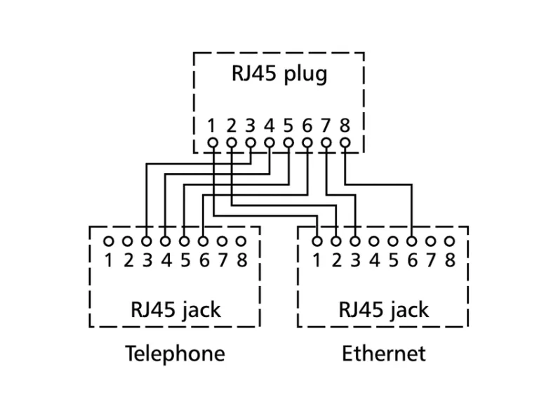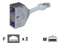 - cable sharing adapter for simultaneous operation of two 4-wire services, here: 1 x Ethernet and 1 x telephone (ISDN), via an 8-wire installation wire - use in pairs: one adapter on wall outlet, one adapter on distributor - shielded adapter with class E transmission characteristics in Link acc. to IEC 11801 Ed.2.2:2011-06 and DIN EN 50173-1:2011-09 - 1 x Ethernet up to 100 MBit E / Fast Ethernet - slim shape allows plugging next to each other - short, flexible connection - delivered as set of two pieces