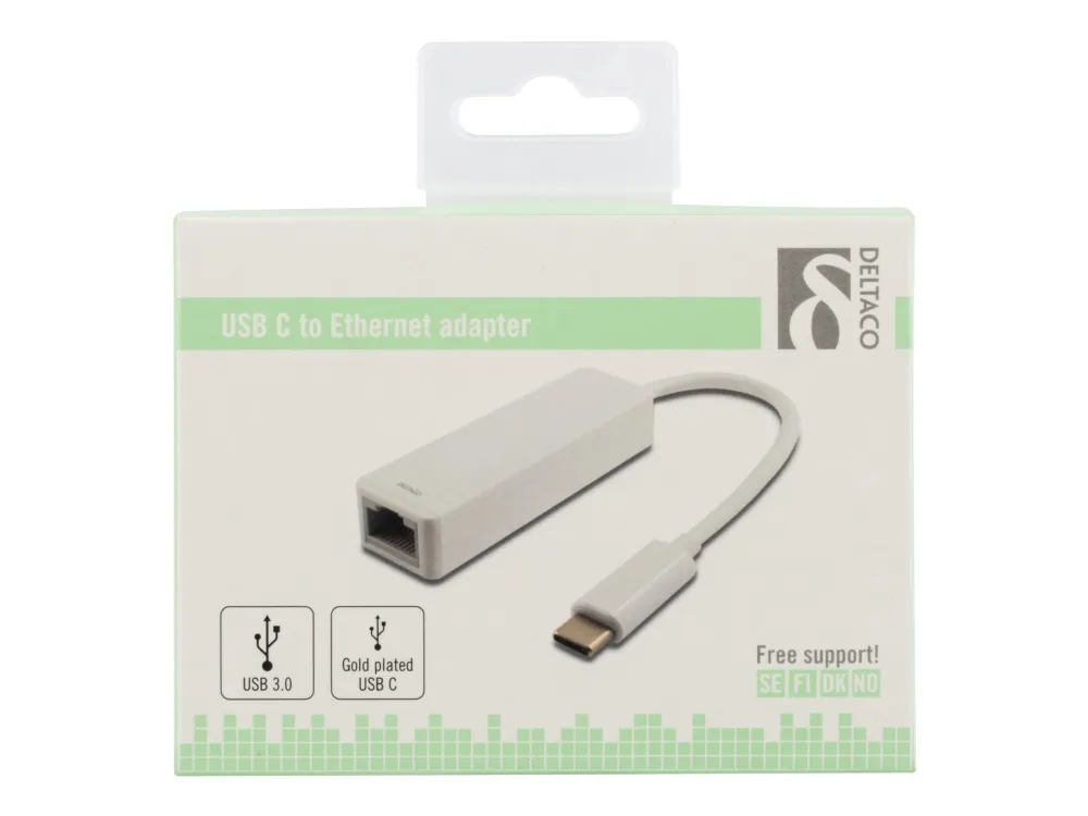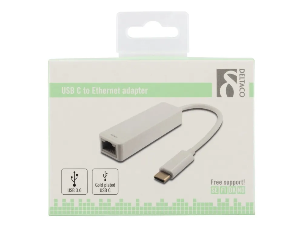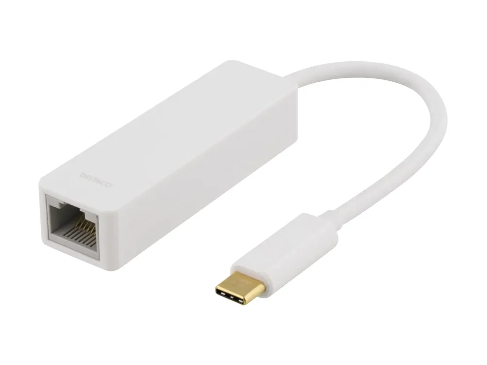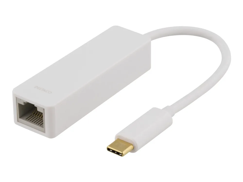 Deltaco USBC-GIGA1, Langallinen, USB Type-C, Ethernet, Valkoinen