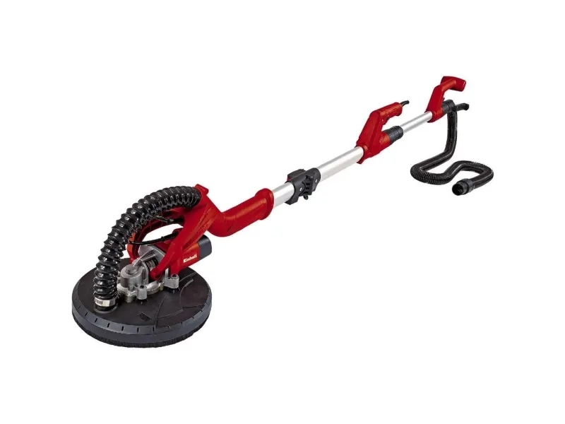 Einhell Classic TC-DW 225 - gipsvæg-sliber - 600 W. Einhell tørbygningssliber TC-DW 225 er en universel og praktisk hjælper i den indvendige udbygning og ved renovering til alle krævende gør-det-selv-folk. Takket være den kraftfulde 600 watt motor med et førsteklasses metalvinkelgear kan du uden besvær og hurtigt løse alle slibeopgaver ved tørbygningsarbejde, Som for eksempel slibning af vægge og lofter samt fjernelse af tapetetetetetasten, farve, løs puds og så videre. På den store slibetallerken med en diameter på 225 mm kan slibeskiverne nemt monteres og udskiftes ved hjælp af det praktiske velcro system. Den optimale tilpasning af slibehastigheden til forskellige underlag, der skal bearbejdes, kan hurtigt og nemt indstilles med regulering af omdrejningstal. For de bedste resultater og det bedste arbejde er denne tørslibeenhed udstyret med teleskopskaft op til 165 cm længde og et ergonomisk T-greb, så du også kan arbejde ved loftsnedrustningen uden anstrengelse. Derudover sørger et led