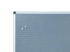 Ilmoitustaulu, Bi-Office Maya. Ilmoitustaulu sekä magneeteille että korttineuloille. Sininen korkkitaulu, jossa harmaa metalliruutu, 5 mm reiät. Sisältää 6 kirkasta korttineulaa, 2 harmaata magneettia ja ripustimen kiinnitystä varten. Mitat: 90 x 60 cm Tilausyksikkö: kpl.