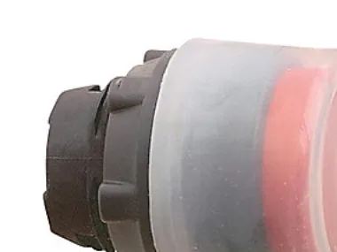 Harmony-muovinen painonappipää, jossa on punainen silikonikorkki ja jousipalautus, käytettäväksi kyltinpitimien kanssa