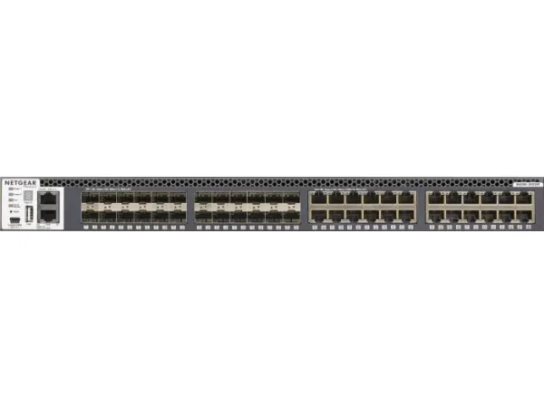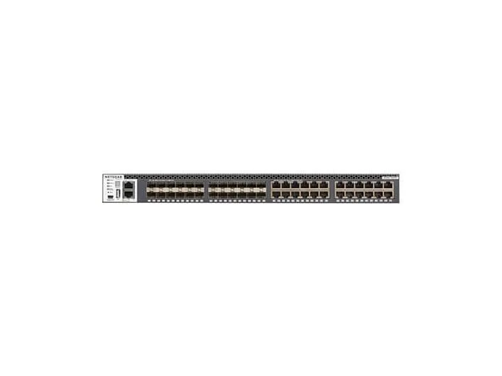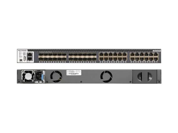 M4300-24X24F comes with 24 ports 10GBASE-T and 24 ports 10GBASE-X SFP+ in a full-width form factor. All 48 ports are independent and 1G backward compatible for progressive transition to 10G speeds. Ideal for Top-of-Rack server and storage applications: 1+1 PSU protection and front to back cooling ensure hot and cold aisle compliance. M4300-24X24F is line-rate with 960Gbps fabric for SMB core applications as well as spine and leaf stacking architectures.