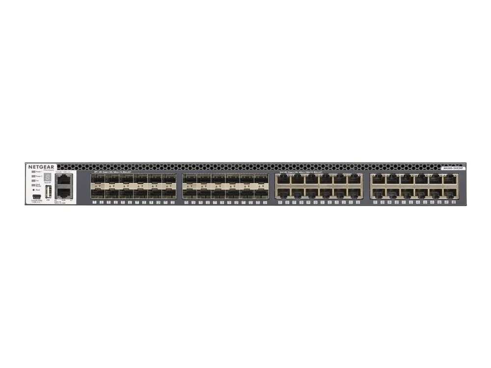 The NETGEAR M4300 Switch Series delivers L2/L3/L4 and IPv4/IPv6 rich services for enterprise edge and SMB aggregation deployments with unrivaled ease of use: 10 Gigabit models can seamlessly stack with 1 Gigabit models within the series. Non-stop forwarding virtual chassis architectures provide advanced High Availability (HA) with hitless failover, that is, distributed link aggregation allows for load balancing and virtually zero downtime. License-free L3 feature set includes static routing, policy-based routing, RIP, VRRP, OSpiv as well as Multicast PIM routing. The NETGEAR M4300 Switch Series is ready for the future, with Software-defined Network (SDN) and OpenFlow 1.3 enabled for your network.