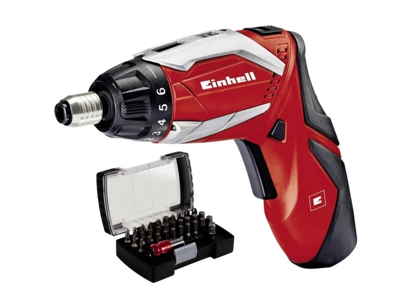The high-quality TE-SD 3,6 Li Kit cordless screwdriver is an extremely practical and versatile tool for ambitious DIY enthusiasts, which should not be missing in any household. The lithium ion battery offers 30% more capacity for prolonged operation. Thanks to a pivot joint, the tool is converted with a twist of the hand from a pistol screwdriver to a straight screwdriver for easy and quick screwdriving even in places which are difficult to access. The TE-SD 3,6 Li Kit has variable torque with seven settings. It features precision power control via robust metal gearing with reversing facility for every screwdriving task. A bit lock enables the bits to be firmly secured and quickly replaced. A magnetic screw holder acts as your third hand. The soft grip permits safe and user-friendly handling. A bright twin LED lamp lights up the work area in every situation. A 3-step LED battery indicator and charge indicator light show the current charge status. The accessory set (32-piece) includes a bit box containing all of the standard bits. The tool is supplied in a practical metal gift box.