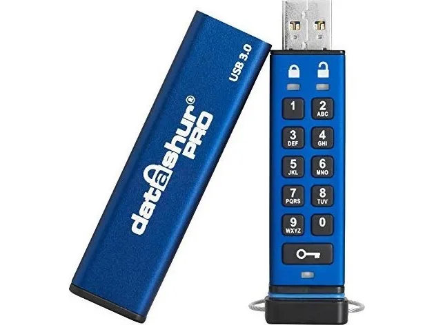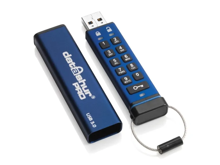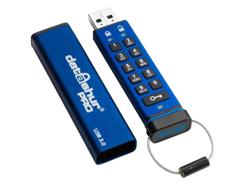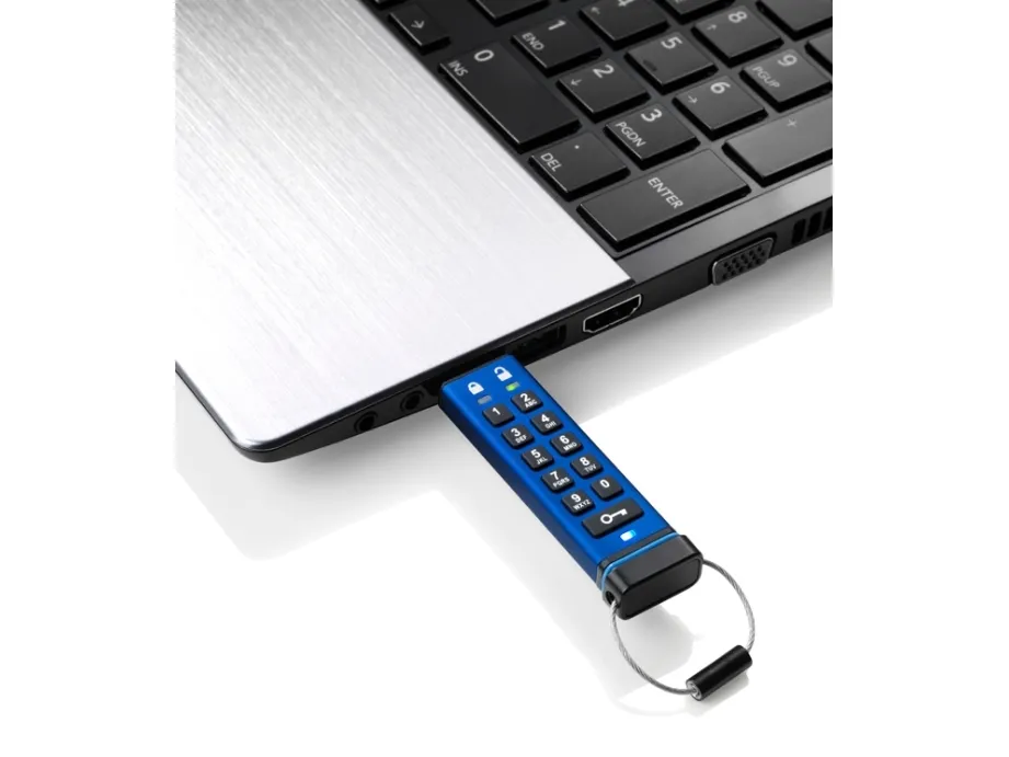iStorage datAshur on maailman turvallisin, helppokäyttöisin ja edullisin USB-muistitikku, jossa on PIN-koodin käyttöoikeus ja sotilasluokan AES 256-bittinen laitteistosalaus. DatAshurissa on ladattava akku, jonka avulla käyttäjä voi syöttää 7-15-numeroisen PIN-koodin sisäiseen näppäimistöön ennen aseman liittämistä USB-porttiin.