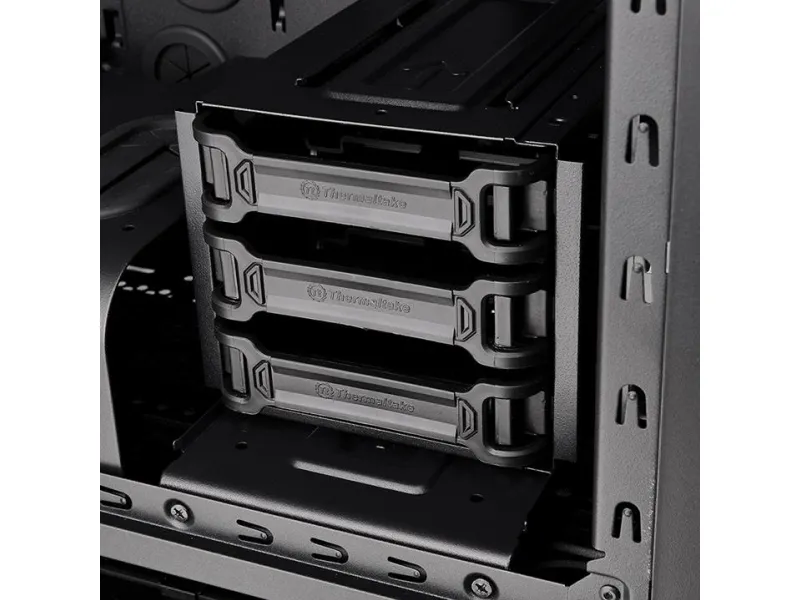 Fully Modular Concept A “2 + 3” drive bay design for storage devices makes setting up the latest storage solution super easy and flexible. Besides hanging 3 x 3.5”/2.5” at the back of motherboard tray, users are capable of freely adjusting the 3.5” hard-drive cage to suit their particular needs.