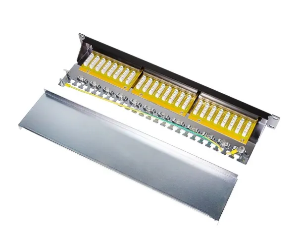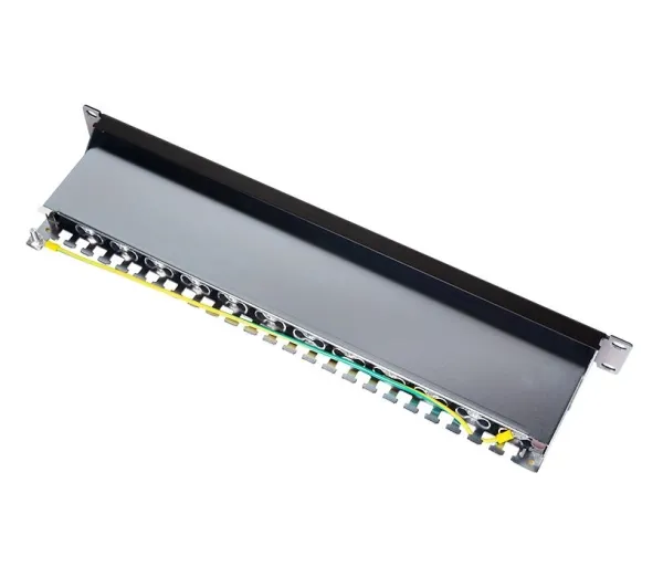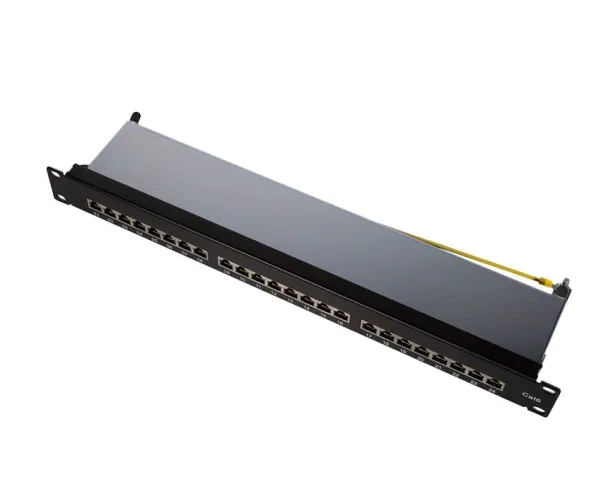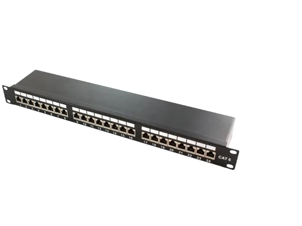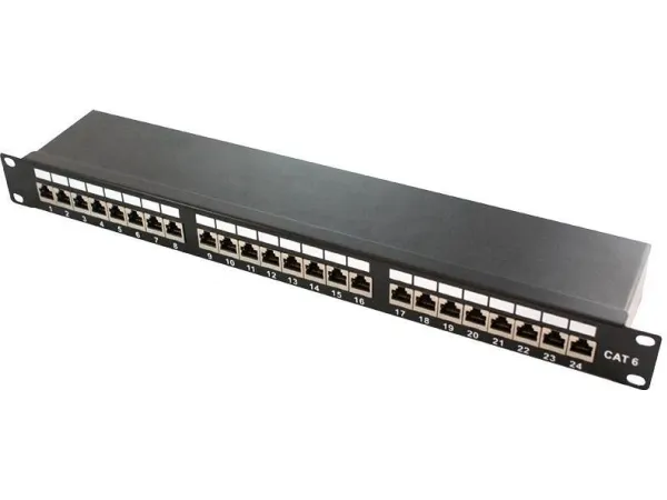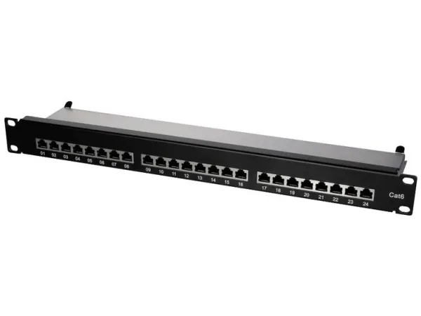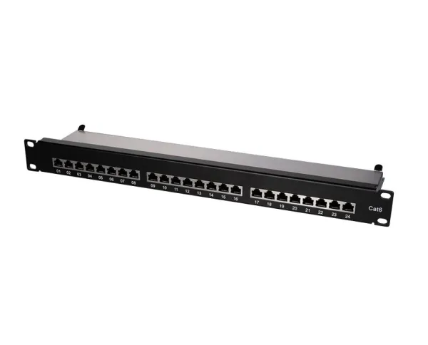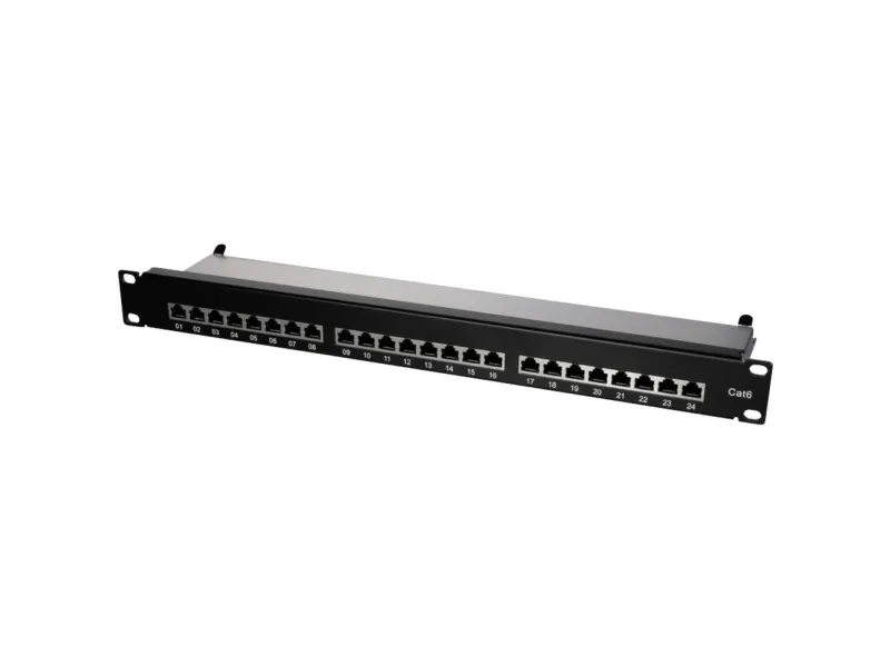 - Categorie 6 Class E 250 MHz\n- ISO/IEC 11801 and TIA/EIA 568B.2-1\n- 24 shielded RJ45 jacks\n- Fully shielded steel housing 1U\n- Color: RAL9005 black