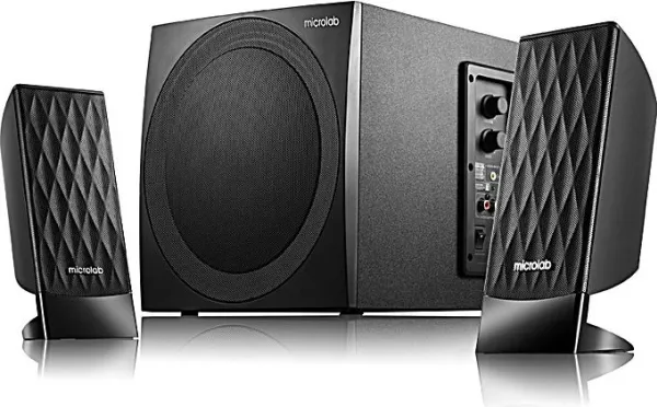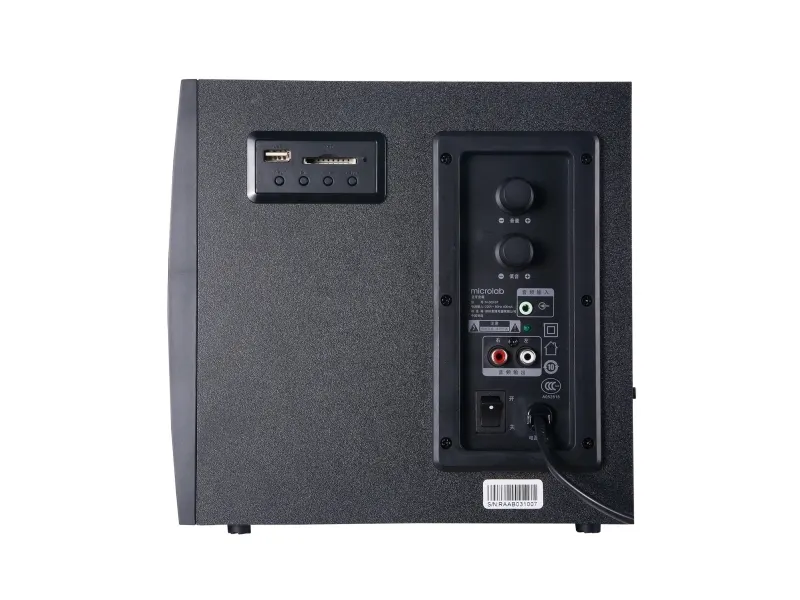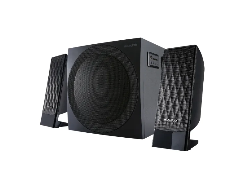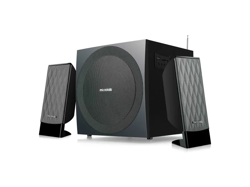 Multimedia speaker system fits perfectly in any environment for music entertainment. The latest Bluetooth wireless technology gives you perfect wireless music streaming.\n\nDesigned with USB/SD Card Slots for instant digital music playback. Built-in FM tuner brings pleasant radio enjoyment for you. With Bluetooth technology and USB/SD card playback function, it is of great convenience and flexibility for you to use it anywhere you want.\n\nSpecially angled satellite for optimum listening and stands for firm support and minimum noise. Quality wood cabinets for warm sound and great sound characteristics.\n\nM-300 BT will take you to begin a perfect music travel.