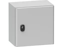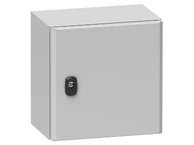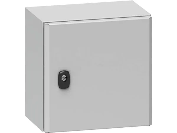 Schneider NSYS3D66 40P seinäkaappiSpacial S3D Volltur asennuslevyllä H600xW600xD400.IP66 IK10 RAL7035. Tuotesarja: Spacial S3D - laitteen käyttökohde: monikäyttöinen - tuote- tai laitetyyppi: kompakti kaappi - kaapin nimelliskorkeus: 600 mm - kaapin nimellisleveys: 600 mm - kaapin nimellissyvyys: 400 mm - asennuslevyn kuvaus: suora - levytyyppi: vakio - yksikön rakenne: kaappi 1 kpl, asennuslevyjä 1 kpl, kaapelin läpivienti 1 kpl, ovi, jossa on lukko 1 kpl.