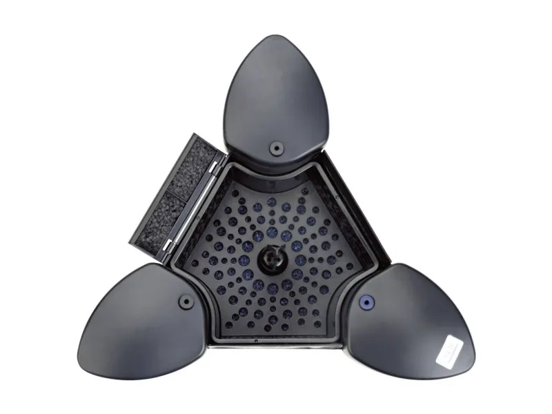 Tehokas imu jopa 25 m² patoalueille. Huomattavasti parempi vedenlaatu ja syvyysnäkyvyys poistamalla lian suoraan pinnalta. Integroitu injektori lammen hapensyöttöä varten. Helppo puhdistaa käytännöllisen korikeräimen ansiosta. Automaattinen mukautuminen mihin tahansa veden tasoon (40 cm syvyyteen). Erityisen tehokas imuvaikutus patentoidun taputustekniikan ansiosta.