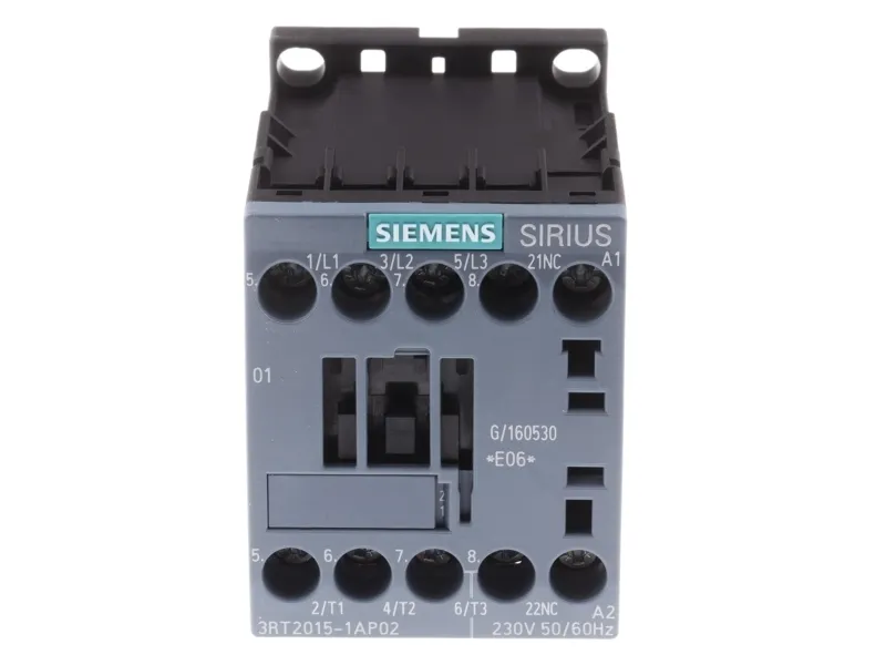 Contactor, AC-3, 7 A/3 kW/400 V, 3-pole, 230 V AC, 50/60 Hz, 1 NC, screw term... Power contactor, AC-3 7 A, 3 kW / 400 V 1 NC, 230 V AC, 50 / 60 Hz 3-pole, Size S00 screw terminal Power contactor SIRIUS 3RT2 for switching motors. The 3RT2 contactors are part of the modular SIRIUS system with its optimally coordinated products. They offer convincing performance from a compact design with high contact reliability. They can be combined with a variety of other components in the load feeder. Many of the device combinations have been factory tested. The contactors offer the best connection to the automation level for every application (parallel, via ASi or IO-Link): Integrated auxiliary switches reduce the complexity of your design. The front-panel terminals simplify the wiring. The 3RT2 contactors are climate-resistant, approved for worldwide use (e.g. IEC and UL/CSA) and are IE3/IE4-ready. They are available in various sizes and in a wide performance range with AC and DC operation. In addition to screw terminals, all the devices are also available with spring-type terminals for fast, maintenance-free and vibration-proof connection. The comprehensive range of accessories, such as auxiliary switches, auxiliary releases etc. is standardized for all sizes. The available link modules, function modules and the SIRIUS 3RV29 infeed system considerably reduce the wiring expense. The 3RT2 power contactors replace the well-proven 3RT1 series (up to 55 kW). Simple, efficient and always up to date - SIRIUS modular system.