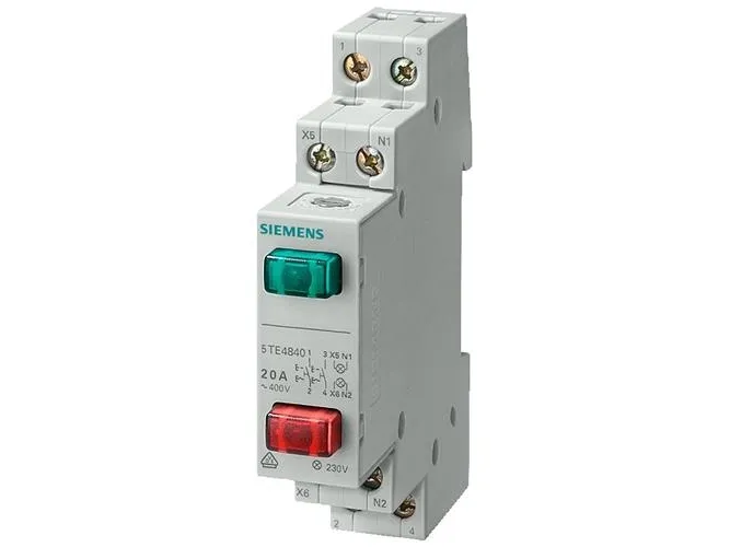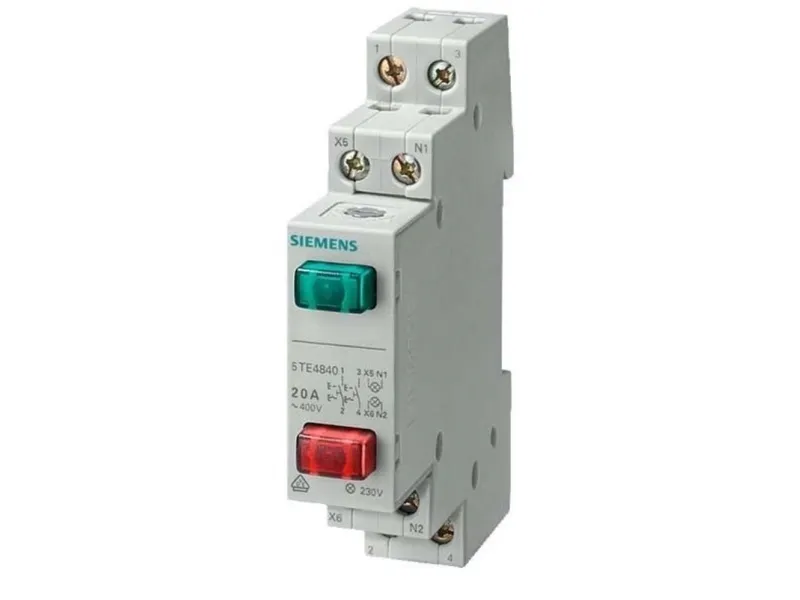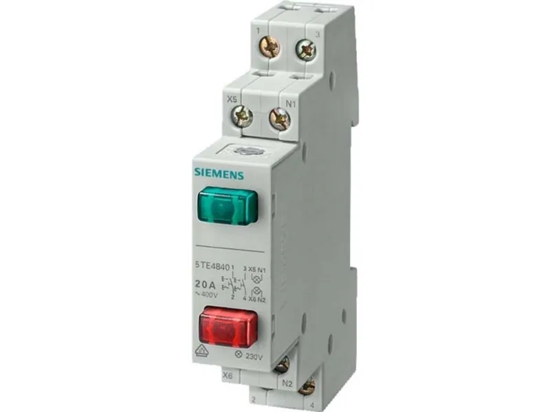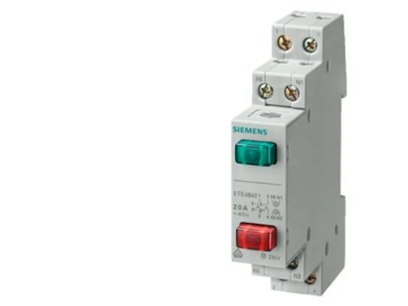 230VTast, 1S+ 1S 20A 2 taster rød grøn pærer 230V switch-enheder til montering på DIN-skinne til styring af elektriske anlæg. Koblings-enheder til montering på DIN-skinne fra Siemens som vigtig del af sentron komponenter til el-installationer i kontrolskabe og fordelere til til-, AUS- og omskiftning af små belastninger. Om med fjern- eller manuelt skift, indgrebs- eller tastefunktion, til infrastruktur eller industrielle krav - Siemens giver switch-enheder til alle anvendelser og enhver opgave. Komfortabel montage- og tilslutningsteknik, ensartet tilbehør og en ensartet design - det er kendetegnet af enhedsfamilie. Omfattende programmer til styring og knapper af små belastninger. 2. Ensartet tilbehør i et bredt udvalg er let at montere og til enhver tid kan udskiftes. 3. Pladsbesparende og enkel montering på DIN-skinne. 4. Kombination med fjernafbryder mulig. 5. Pålidelig sikkerhed ved installation takket være som standard integreret omslutnings- og ber