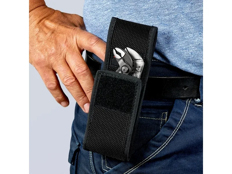 With its small size of 150 mm, the pliers wrench fits in any pocket, while also replacing a whole set of spanners - metric and imperial. It grips all widths up to 27 mm or 1 inch, and can be adjusted quickly and directly on the component at the push of a button. The hinge bolt then engages securely, preventing inadvertent adjustment. When under tension, the smooth gripping jaws are parallel to each other in every position, and hold the component accurately and with zero backlash, without damaging edges and sensitive surfaces such as chrome or brass - important during plumbing and heating installation for example.