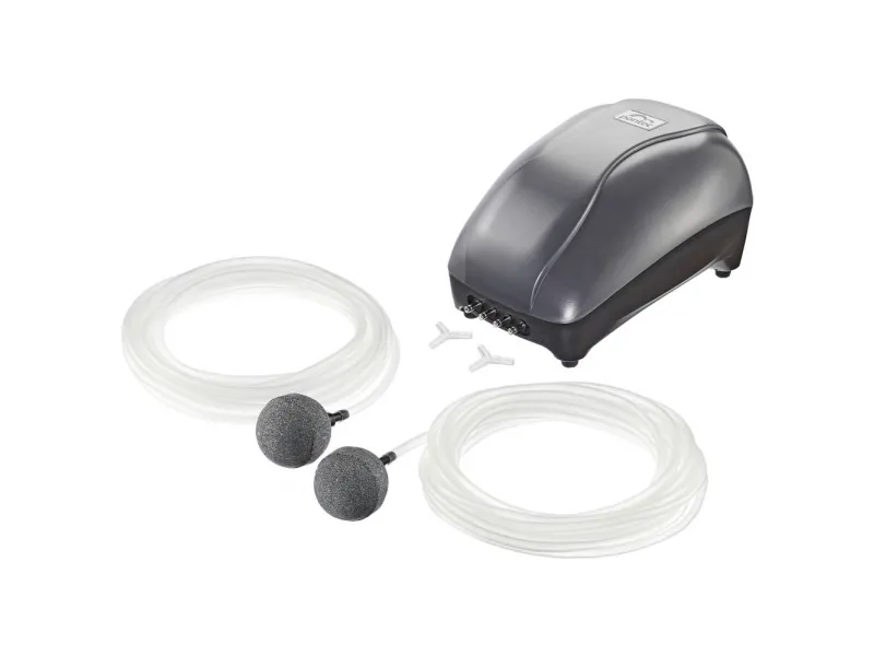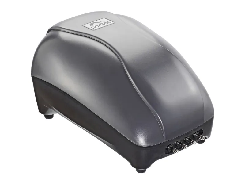 Ilmapumppusarja PondoAir Set 900 Hyvää ilmaa lammelle: PondoAir Set 900 -ilmapumppu täydentää Pontec-ilmapumppujen valikoimaa ja tarjoaa arvokasta lisähappea kasveille ja eläimille. Pieni, vain 12 watin virrankulutus ja miellyttävän hiljainen toiminta tekevät tästä sarjasta sopivan sekä sisä- että ulkokäyttöön. IP44-turvatekniikan ansiosta kalvopumppu on suojattu roiskevedeltä. 900 L/h hienoja ilmakuplia pumpataan veteen kahdella ulosvirtauselementillä. Ilmavirtaus 900 L/h