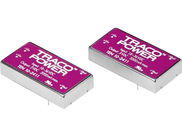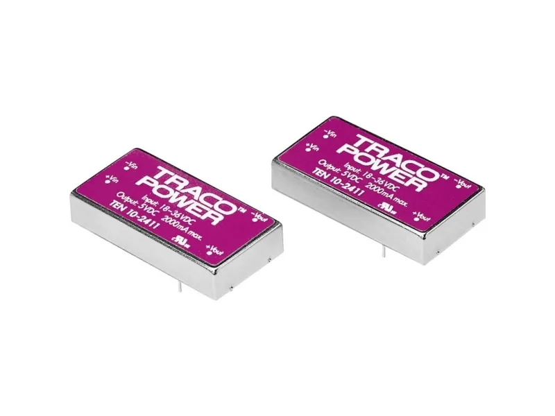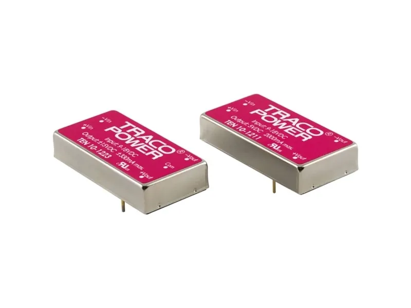 The TEN 10 series is a family of high performance 10W DC/DC converters in a compact 2” x 1” low profile package with industry standard footprint. A high efficiency allows a wide operating temperature range of –40°C to +85°C. A built-in EMI filter is built in to meet EN 55022, class A without any external components. Further standard features include over voltage protection and short-circuit protection. Typical applications for these converters are battery operated equipment, instrumentation, distributed power architectures in communication and industrial electronics, everywhere where isolated, tightly regulated voltages are required.