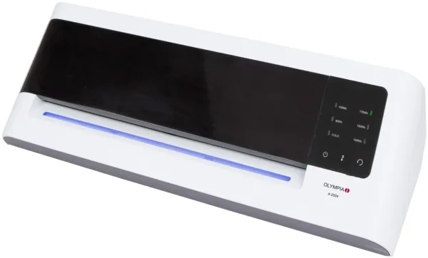 Olympia A 2024. Maximum lamination width: 23 cm, Type: Cold/hot laminator, Lamination speed: 400 mm/min. Power consumption (typical): 300 W, AC input voltage: 220 - 240 V, AC input frequency: 50 Hz. Width: 382 mm, Depth: 124 mm, Height: 191 mm. Package width: 425 mm, Package depth: 240 mm, Package height: 170 mm