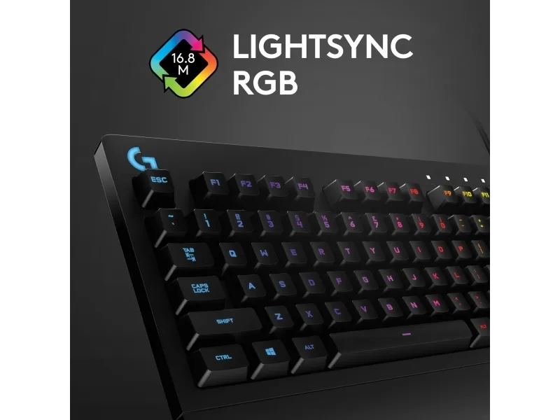 Logitech G G213 Prodigy, Täysikokoinen (100 %), Langallinen, USB, QWERTY, RGB LED, Musta