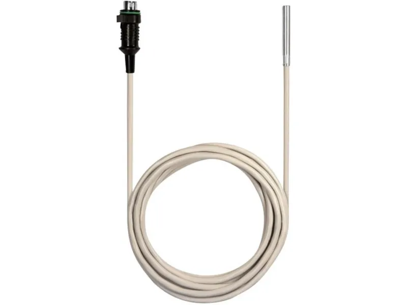 Lämpötila-anturi, jossa on alumiininen holkki ja litteä kärki, soveltuu nesteiden ja viskoosien materiaalien mittauksiin sekä ilman lämpötilan mittauksiin. NTC-anturin ansiosta anturi mahdollistaa tarkat lämpötilamittaukset tarkkuudella ± 0,2 °C. Lämpötila-anturissa on 2,4 metrin pituinen kaapeli. Jatkuviin mittauksiin voit asentaa lämpötila-anturin kiinteästi mittauspisteeseen. Tarvitset vain puristimen tai liitännän (ei sisälly toimitukseen). Lämpötila-anturissa on vesitiiviysluokitus IP 65, joten esimerkiksi mittaukset ilman mahdollista