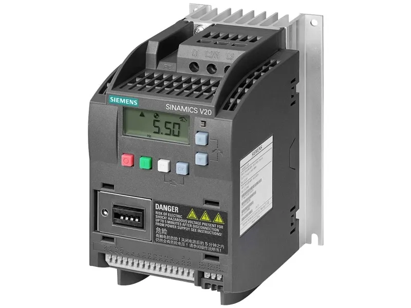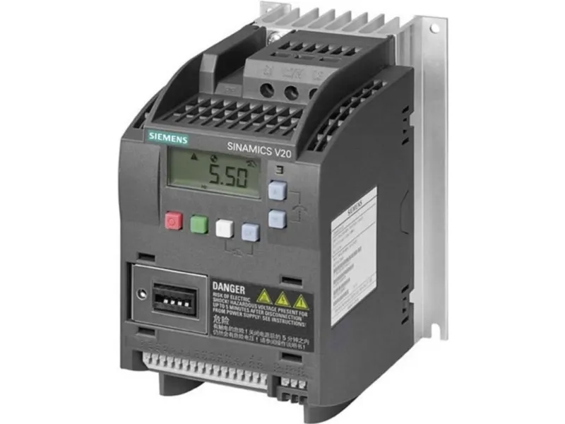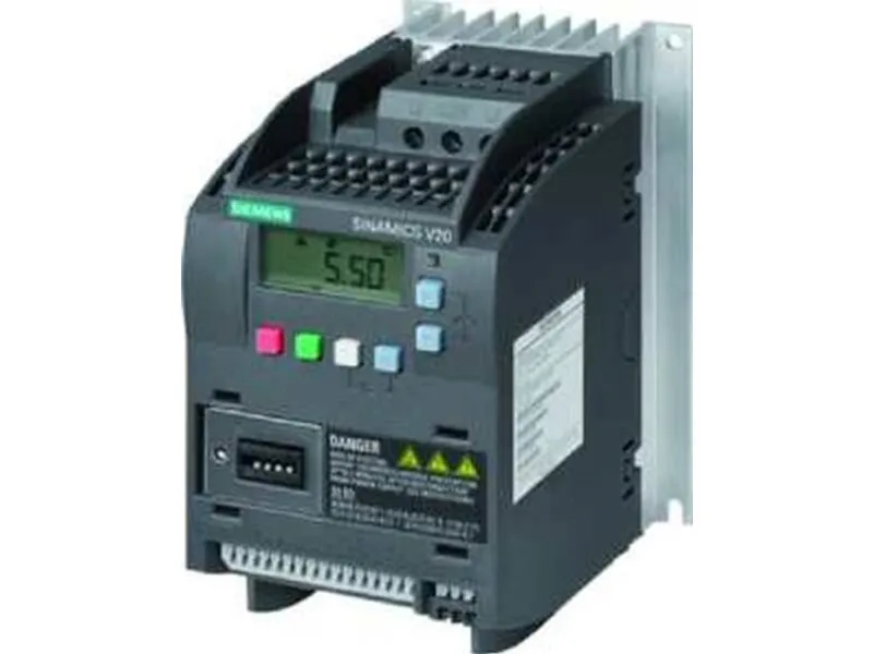 SINAMICS V20, IP20 / UL open type, FSA, A, 380-480 V 3 AC, 0,75 kWVæg- og gennemstiksmotering - begge varianter direkte kan stilles på række · Integreret uss- og Modbus RTU-interfaces · Integreret Brems-Chopper til 7,5 kW op til 15 kW · Kompakt opbygning i mindre skabe · Gennemstikningsmontage gør det nemmere at skabe køling · Kan anvendes uden yderligere indstillinger ud af emballagen anvendes · Grundlæggende betjening via den indbyggede BOP (Basic Operator panel) · Enkel integration i eksisterende systemer · Enkel integration i mikro automatiseringssystem, for eksempel med SIMATIC S7-1200 · Nem ibrugtagning via standard biblioteker og forbindelses-makroer · Den dynamiske bremsning kan anvendes til forbedring af bremseevne · Omformer ≥ 7,5 kW har en indbygget bremsemodul · I dette tilfælde kan Bremsemodstand tilsluttes direkte · Parametre udlæsning og klon uden spændingsforsyning · Integreret forbindelses- og applikation makroer · Keep Running Mode muliggør kontinuerlig drift · H