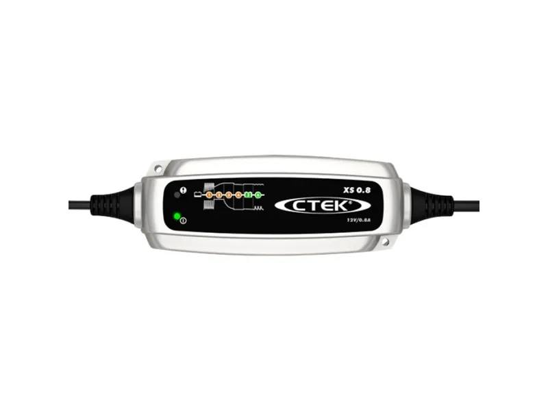 Automatisk ladeapparat XS 0 .8Lyntilslutning · Sulfatbehandling · Returstrøm 1 mA ca. 0,75 Ah/måned, når enheden er tilsluttet batteriet, men ikke nettet. XS 0.8 anvender den nyeste teknologi til opladning af mindre batterier på motorcykler, jetskis, motorslæder, quads og græsslåmaskiner. XS 0,8 er den mindste 12-V-oplader fra CTEK, og den egner sig til opladning af mindre batterier og til vedligeholdelsesladning til normale bilbatterier. XS 0,8 er en fuldautomatisk 6-trins-oplader med en ladestrøm på 0,8 A til 12-V-batterier mellem 1,2 Ah og 32 Ah og til vedligeholdelsesopladning af batterier op til 100 Ah. Apparatet er let at betjene, og den samlede opladning kan overvåges med det klare, let aflæselige display. Aktivering af batterier med sulfatindhold Reaktivering af dybt afladede batterier Opretholdelse af impulsladning for maksimal levetid 6 trin - ses via LED-visning