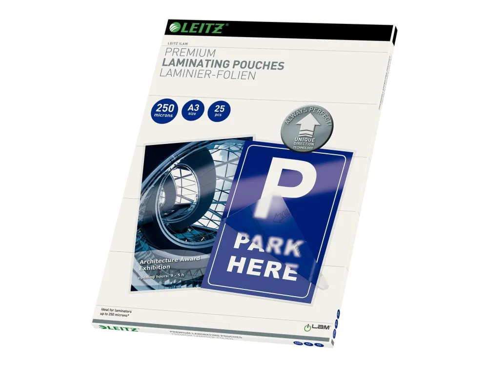 Laminointiarkit Leitz Premium A3 250 mikronia kristallinkirkas - (25 kpl)