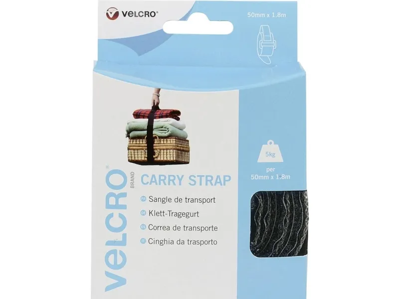 VELCRO® Brand Carry Straps make it easy to carry large, bulky items such as blankets, camping mats, sleeping bags and rolled up rugs. Fully adjustable and durable, this pack contains one strap measuring 50mm x 1.8m.