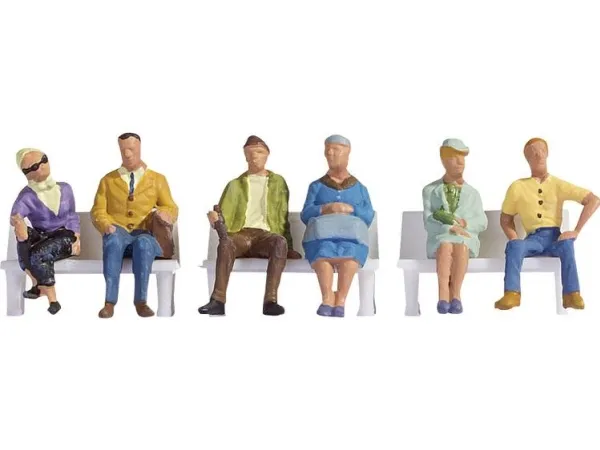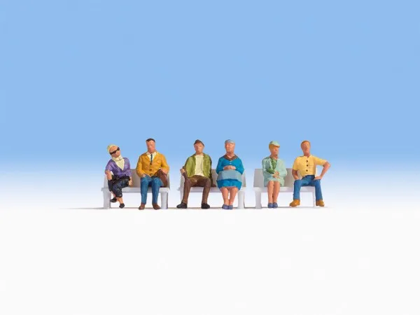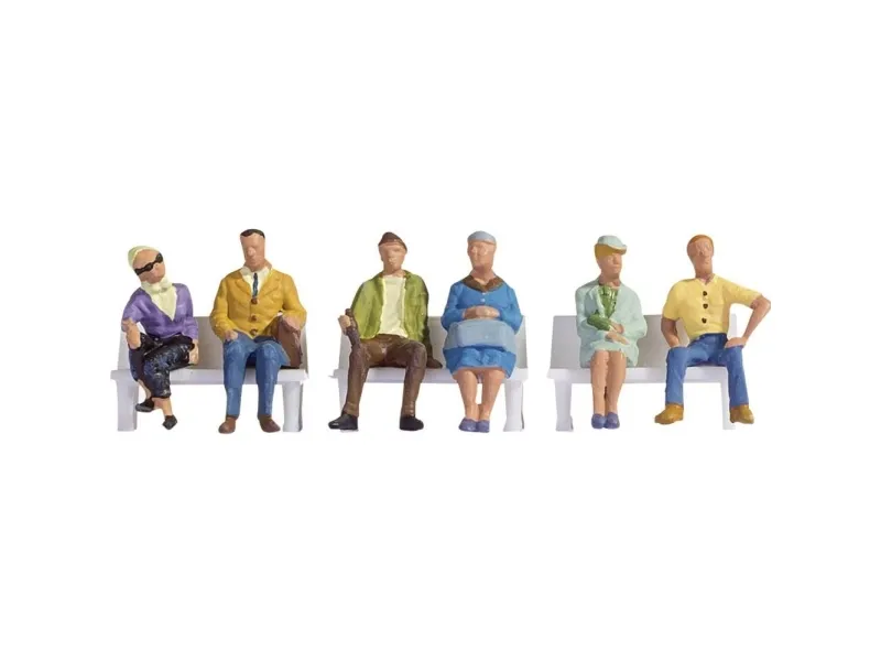 Sitting people are available from NOCH in different designs. They add life to every model railroad scene and railway layout. Let them sit on chairs or benches, in parks, in shopping areas, in cafés or restaurants, waiting at stations or bus stops. NOCH also offers various benches matching these figures.